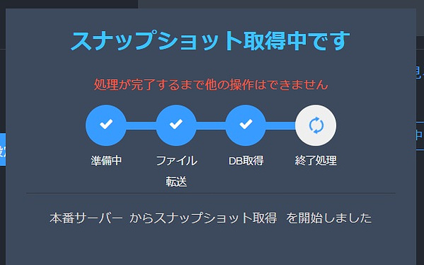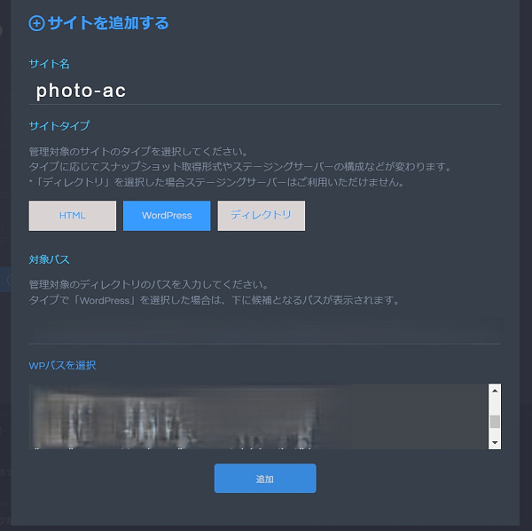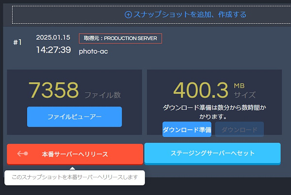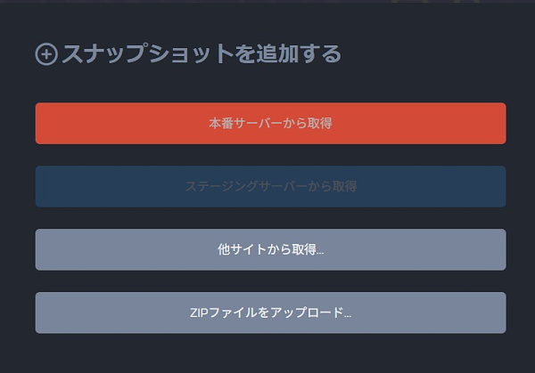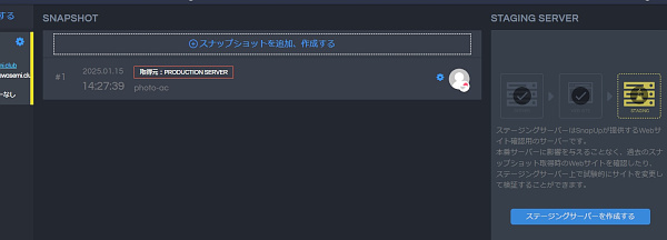 ステージングサーバーの使い方はまず本番環境のサイトを登録し(サイトを追加)、その本番サーバーからスナップショット(サイトのコピーというイメージで良いと思います。)を取得。