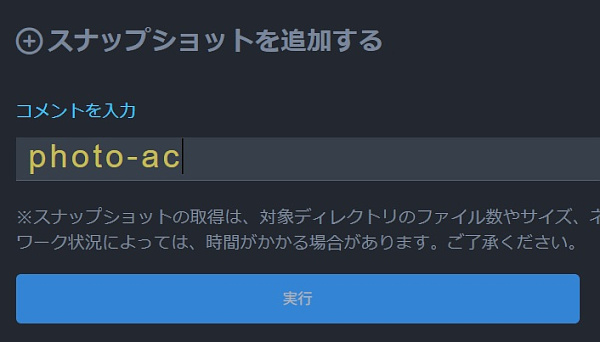 次に本番サーバーからスナップショットを取得して追加。